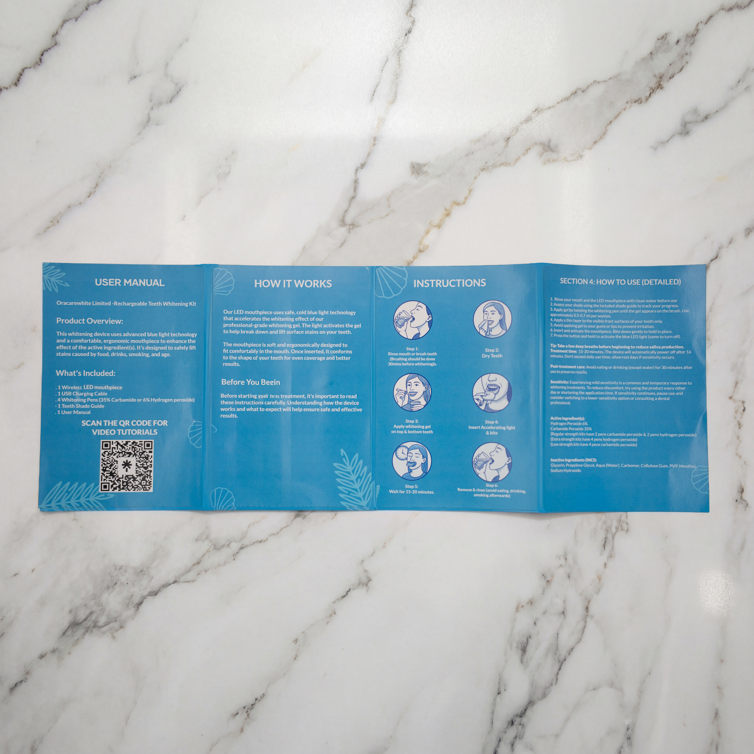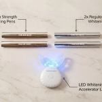 In the Box: LED accelerator light, 4 whitening pens, shade guide, user manual
